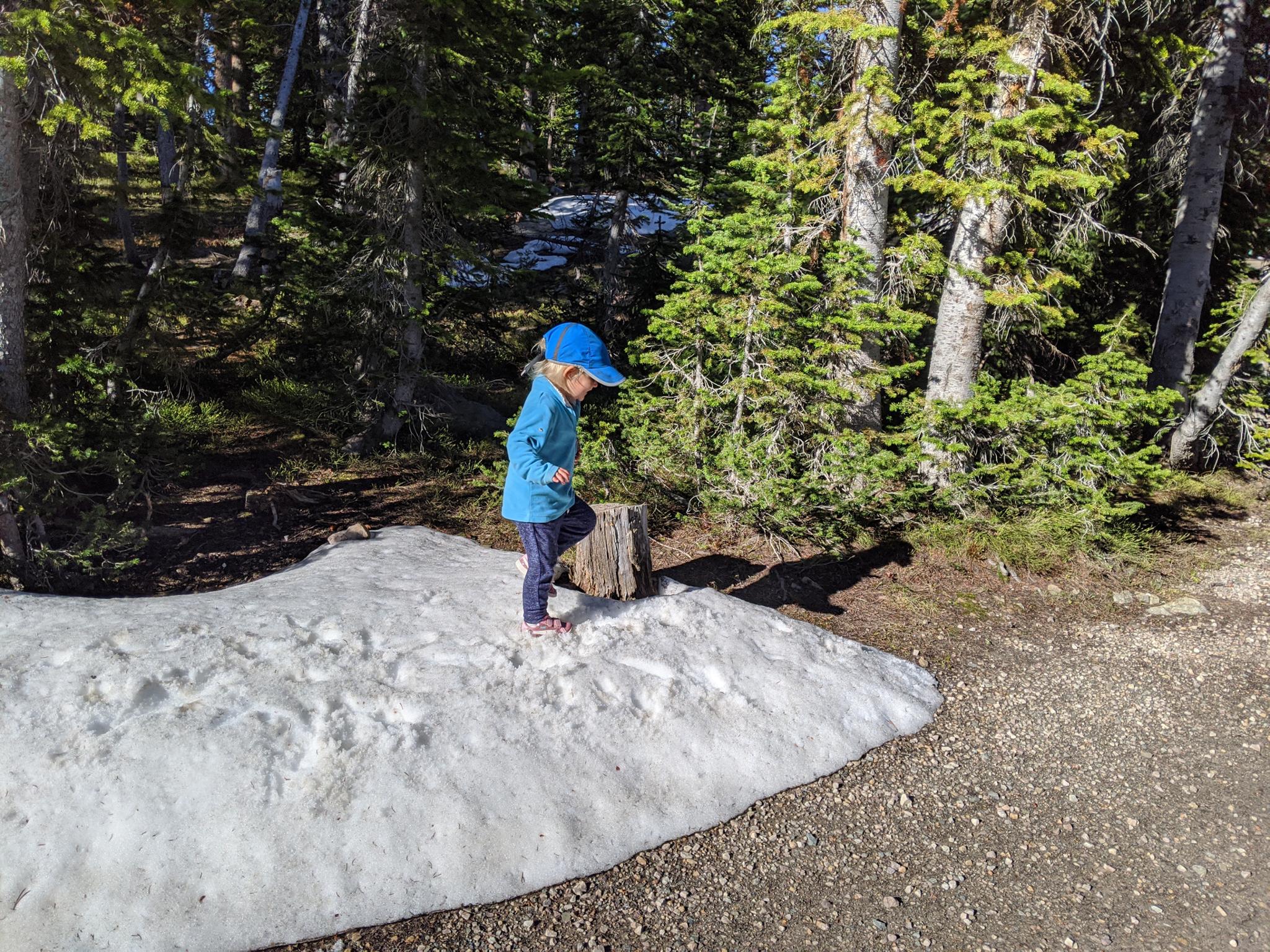 Ruby playing in the snow on a late June trip.