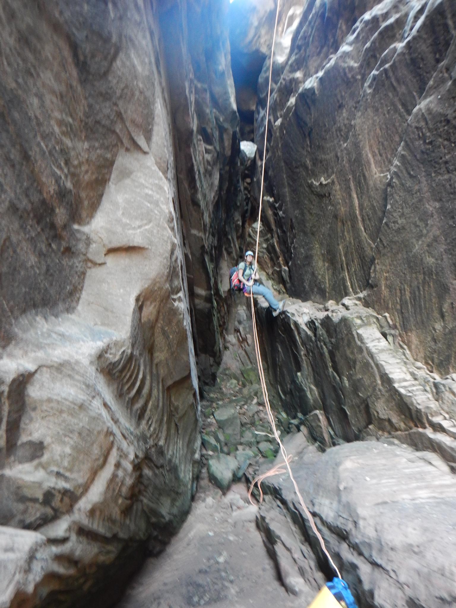 Diane Rappelling in Hidden Canyon
