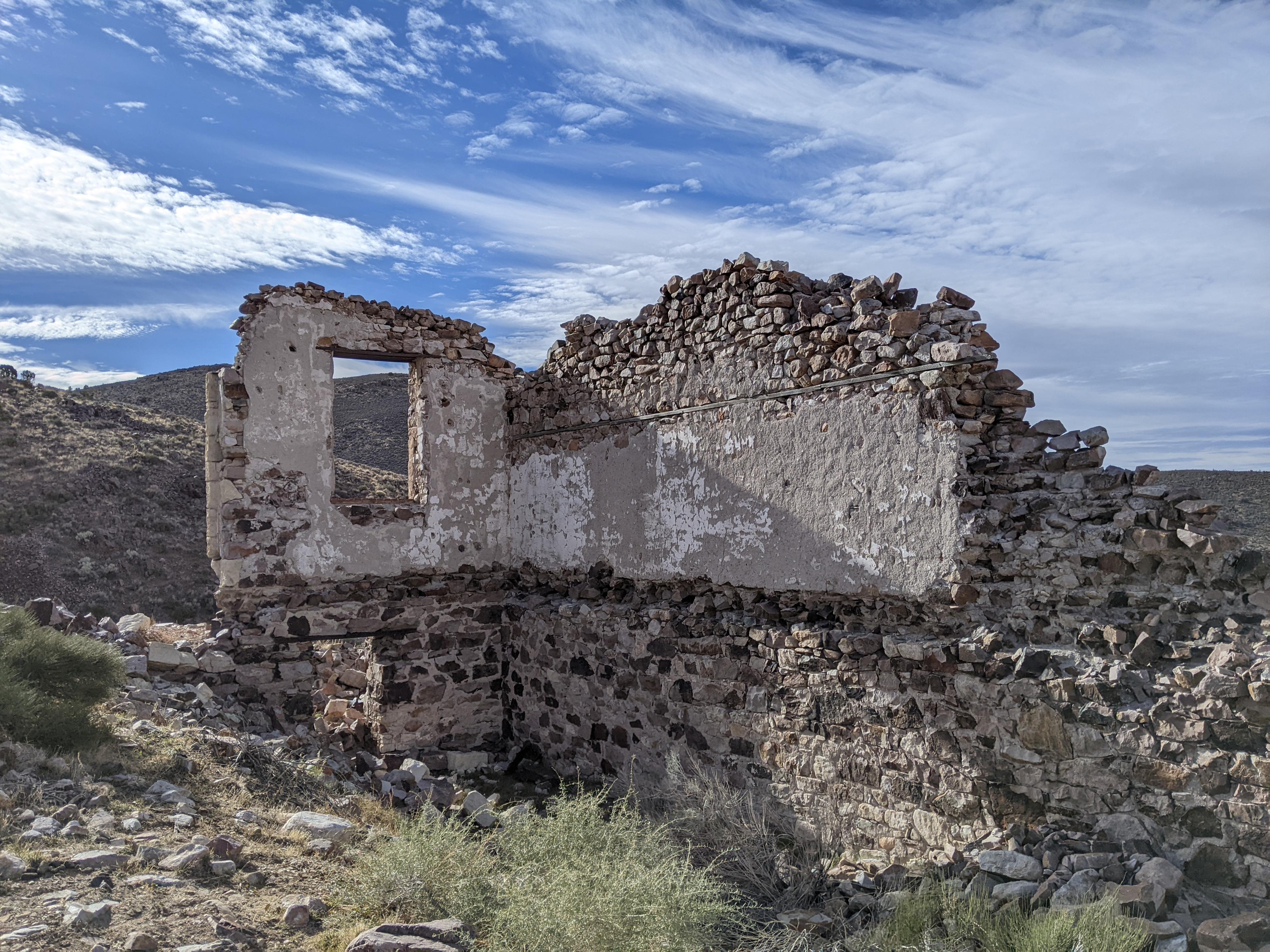 Thick rock walls make up most of the remaining structures in Delamar.