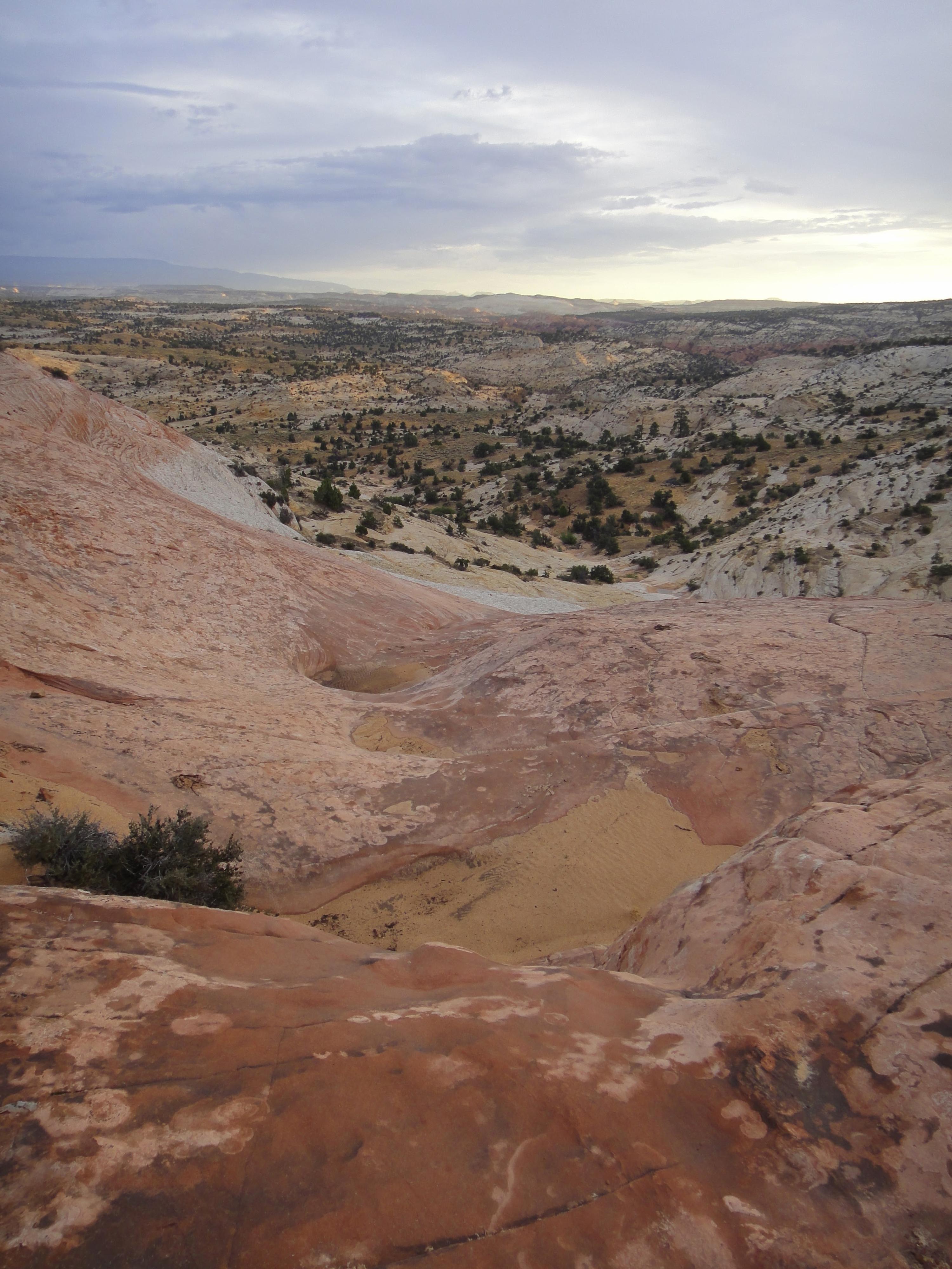 Heading off the mesa into the slickrock beyond.