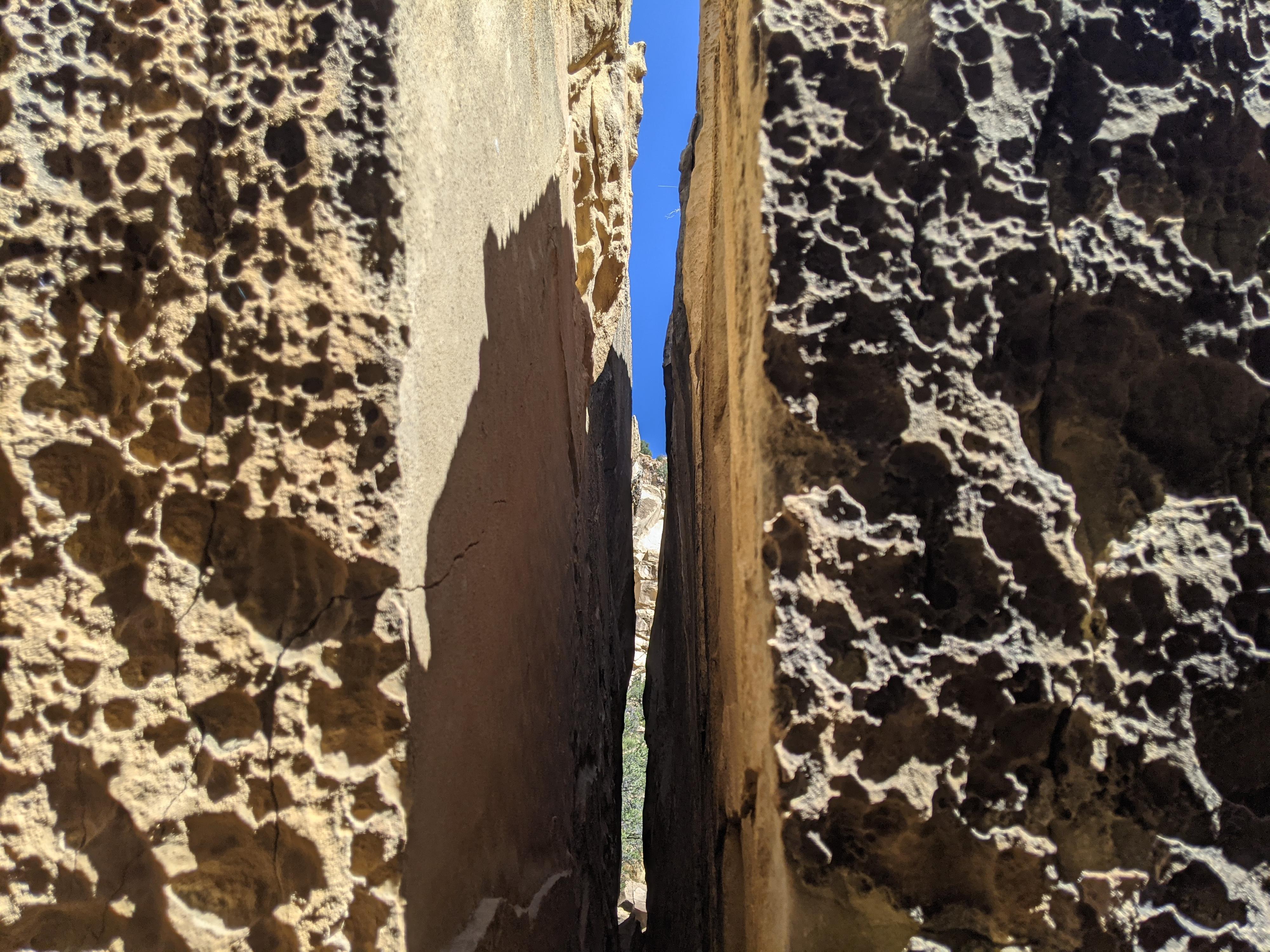 Crack between large boulders.