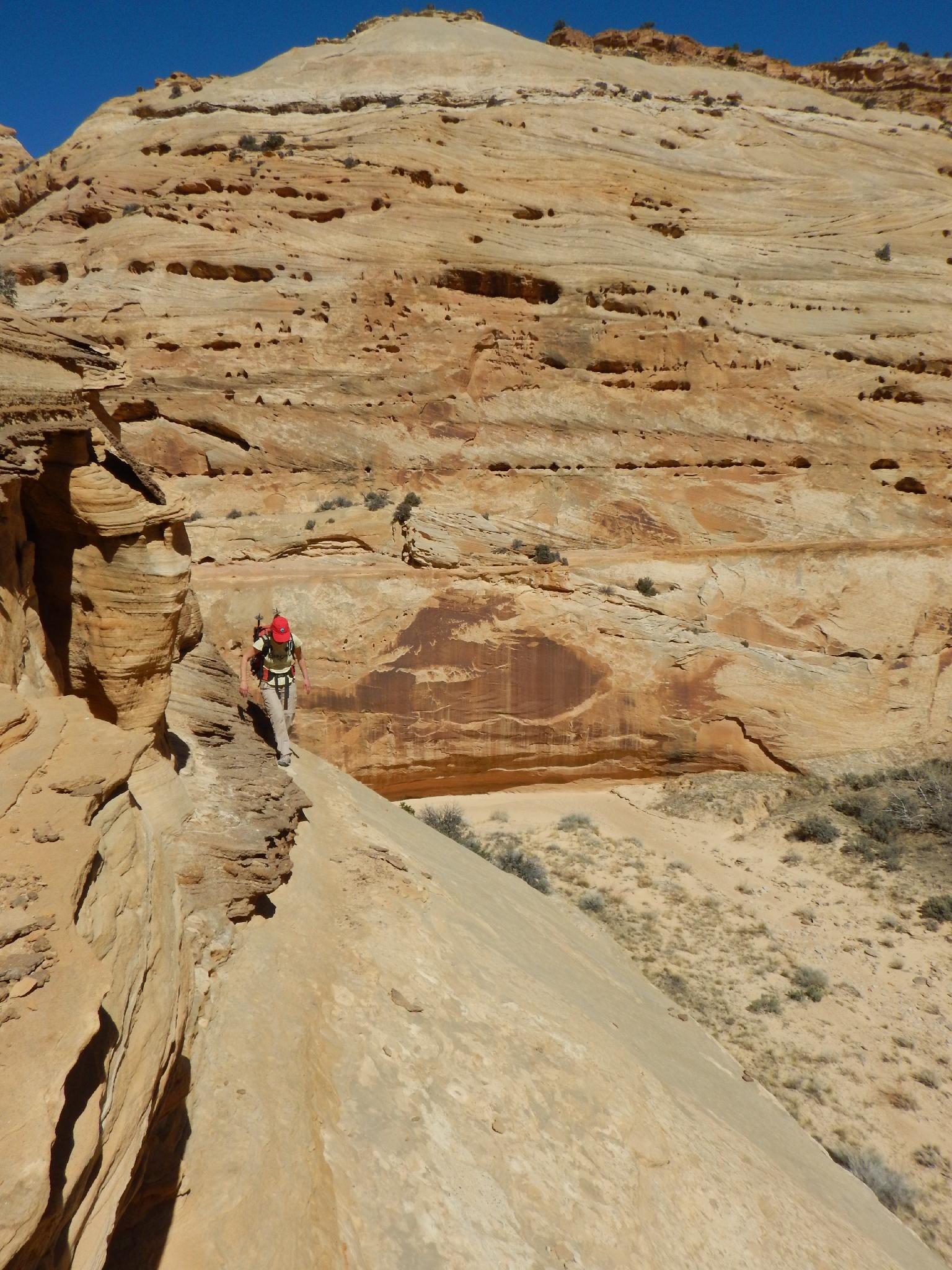 Diane on the slabby traverse just before reaching Eagle Canyon
