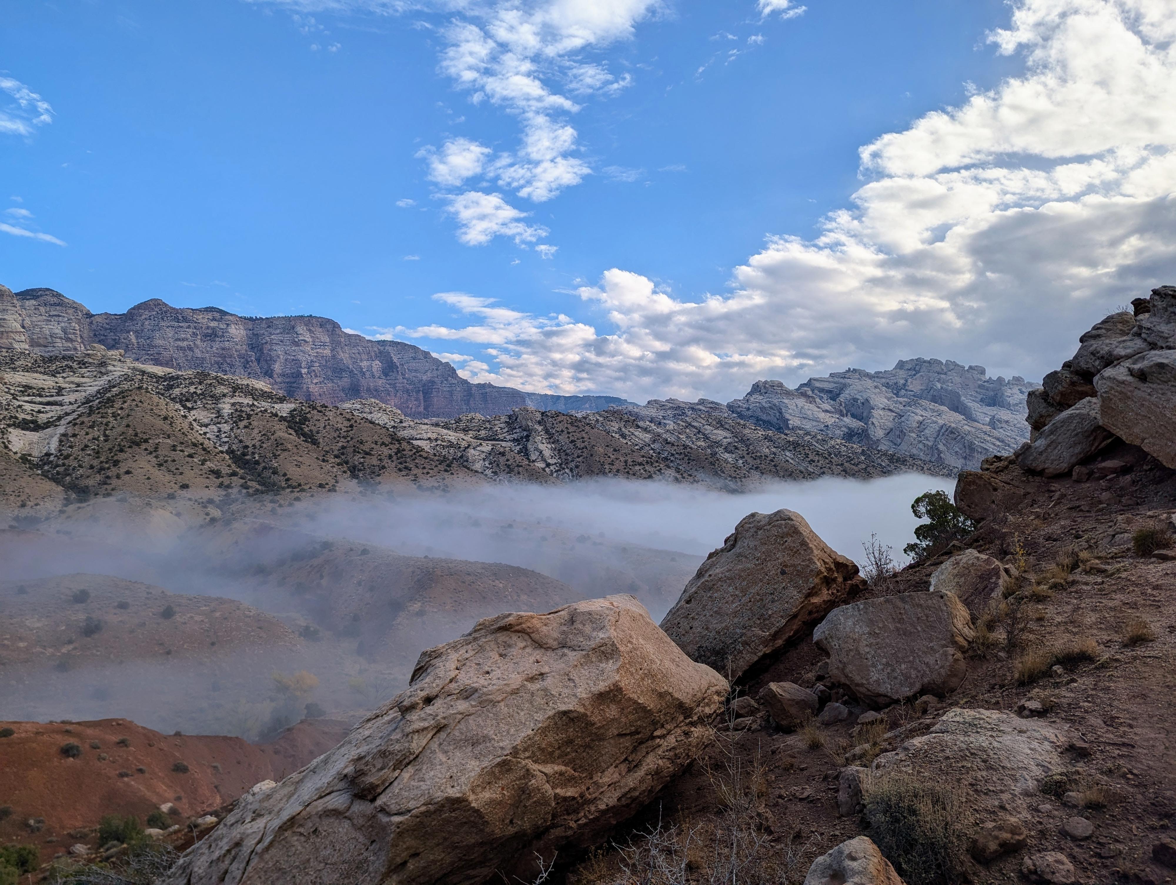 Fog in the valley from the high point of the trail.