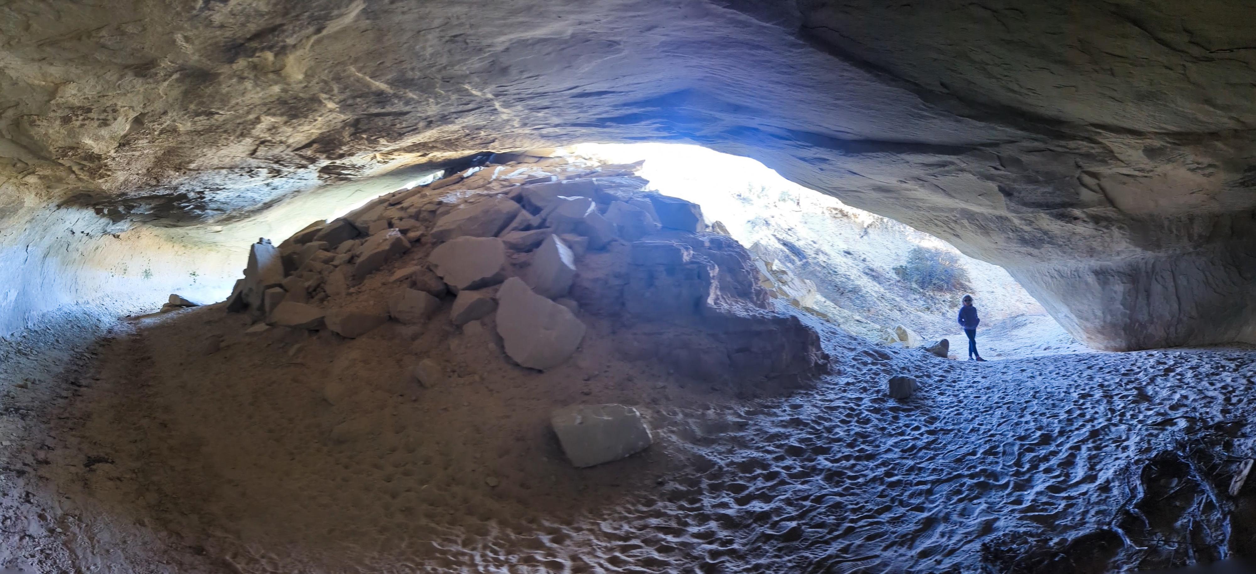 Panorama inside the tunnel at Covered Wagon Natural Bridge.