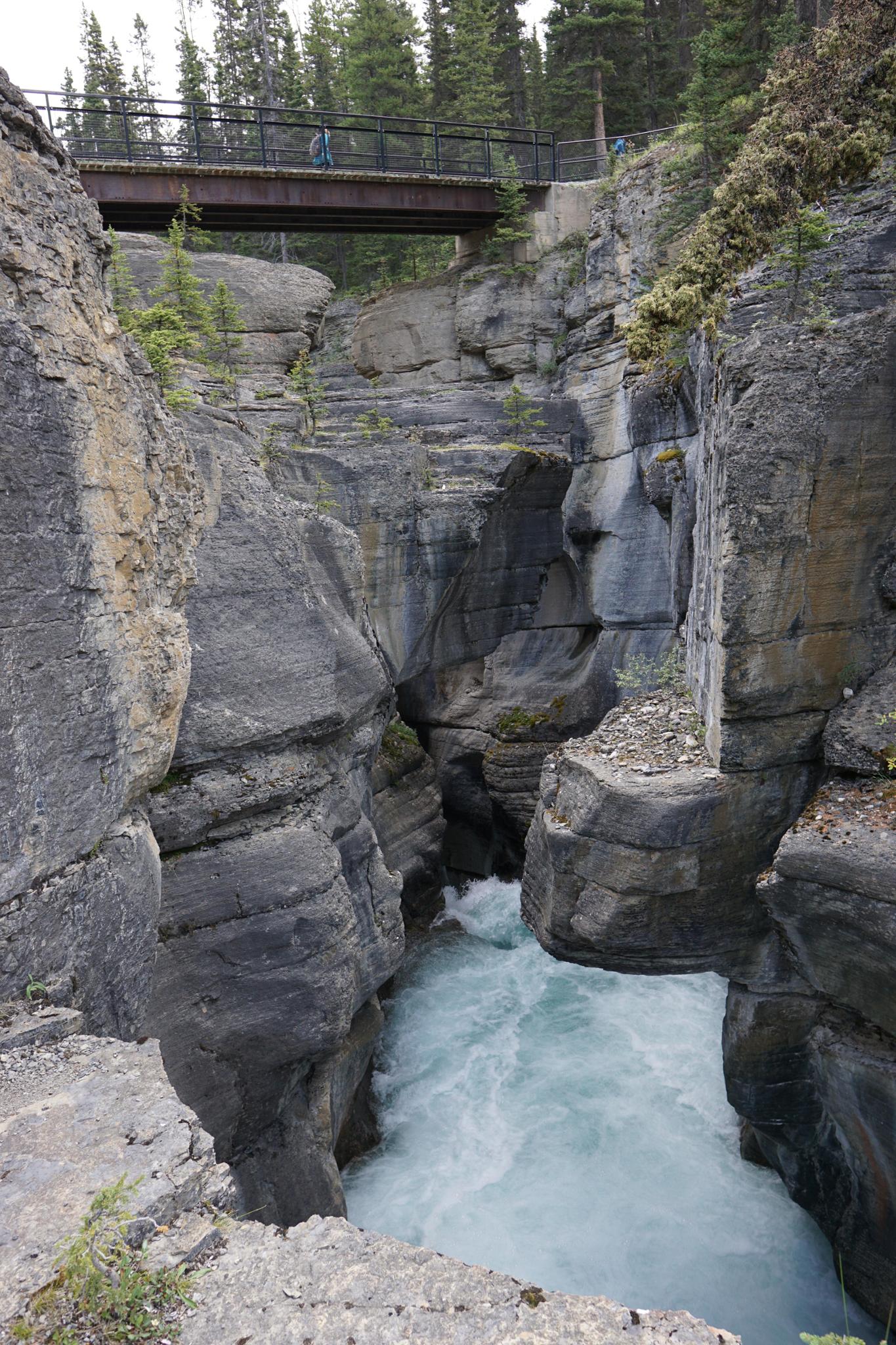 Mistaya Falls - The gorge and bridge.