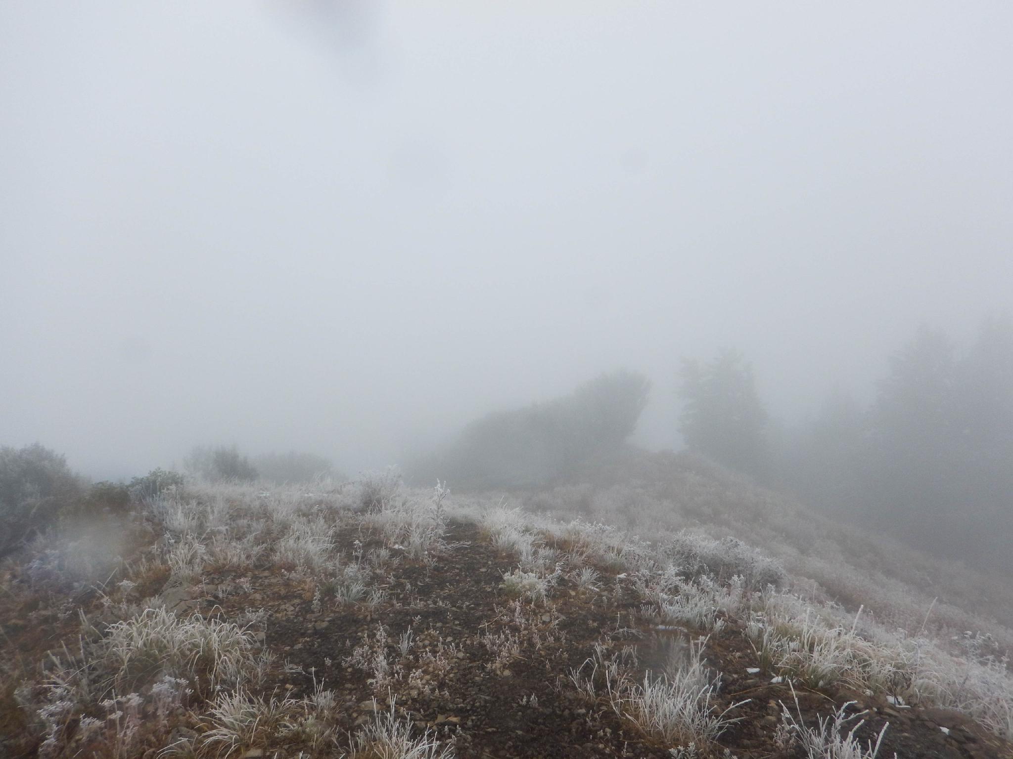 Heading to the cloudy summit.