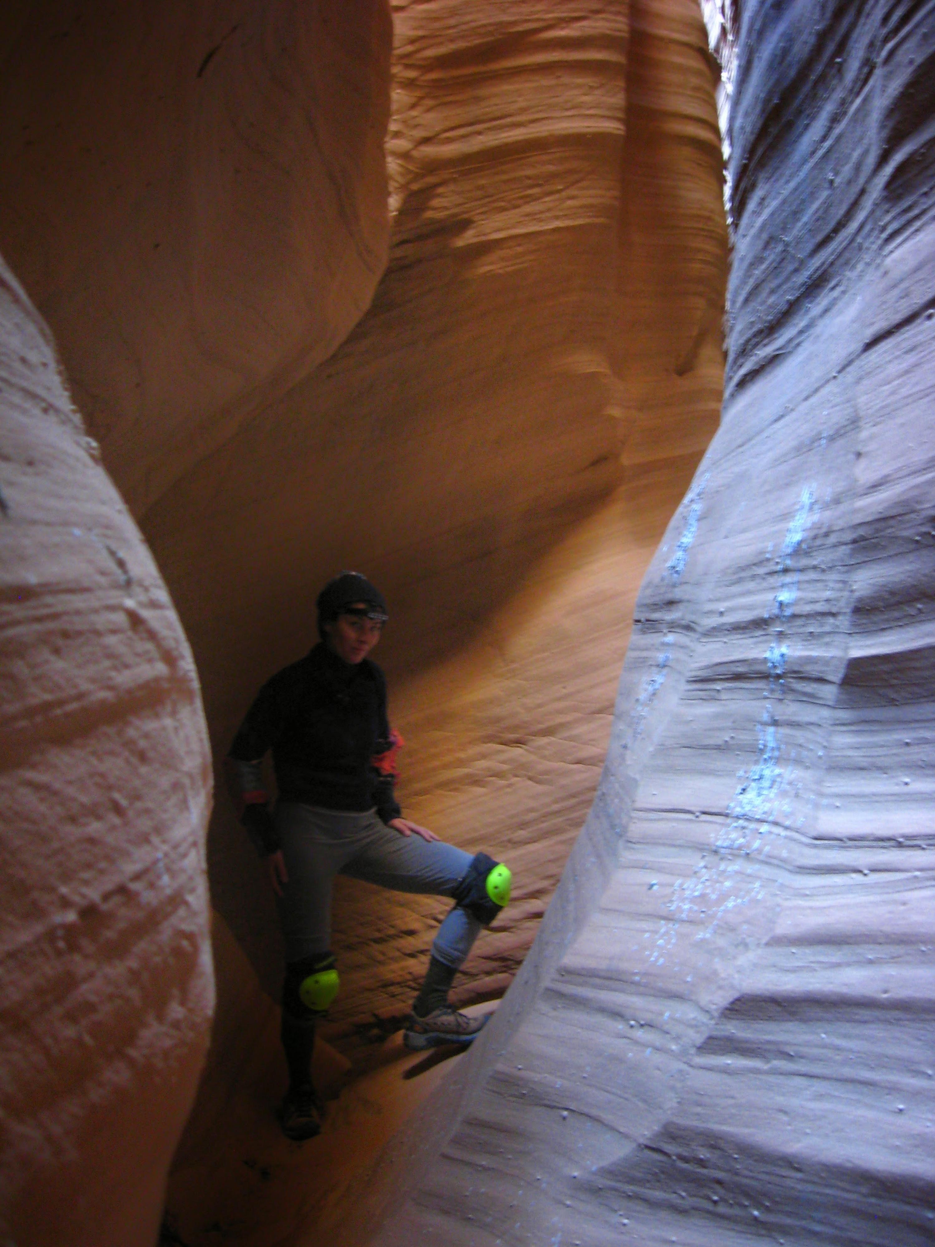 Cristina in the first section of narrows. A wide open spot between tight sections.