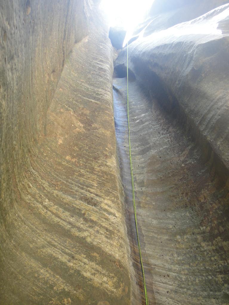 Looking up the first rappel in the first slot section - Mystery Canyon