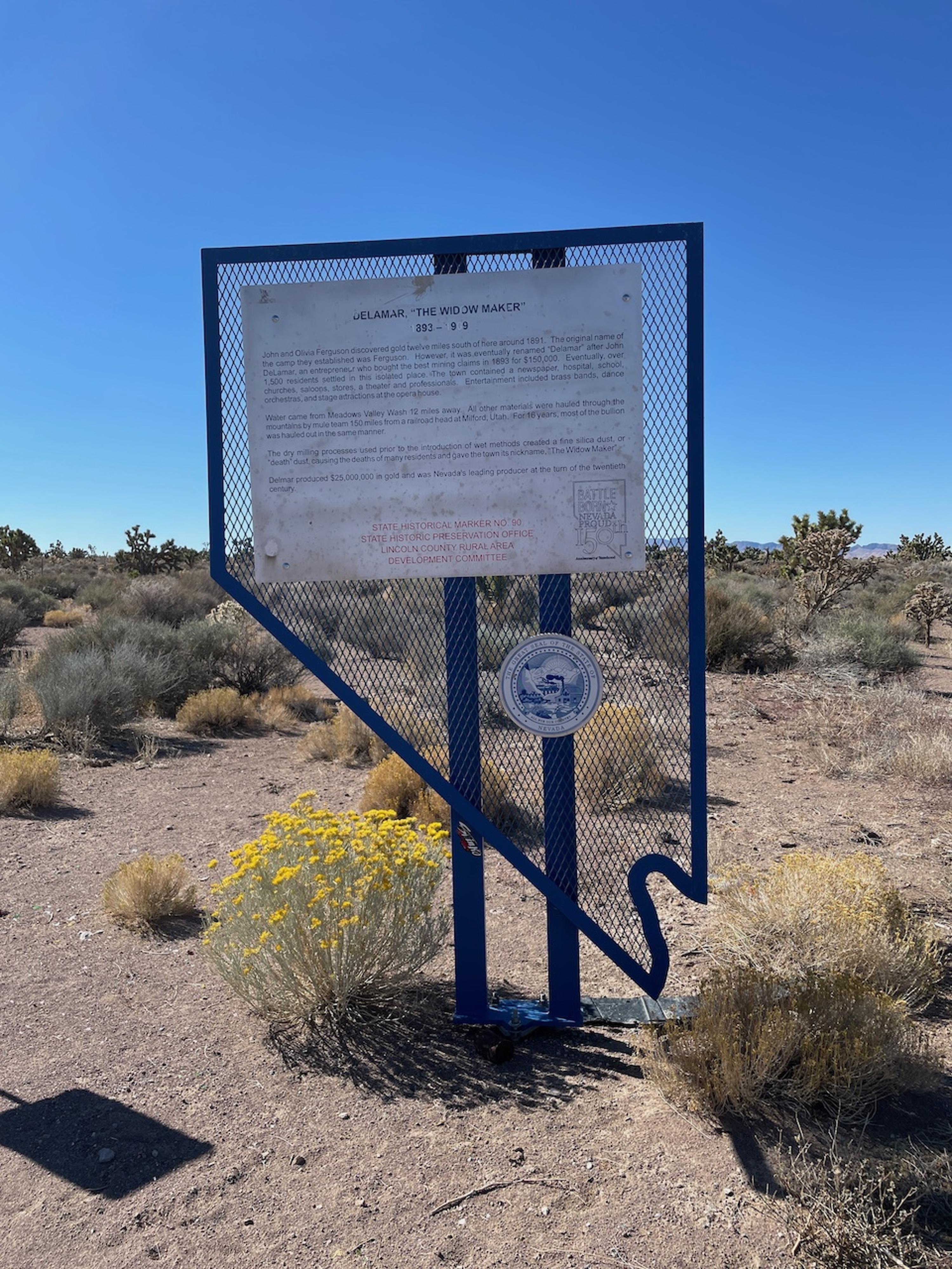 Historical marker at turnoff from US 93