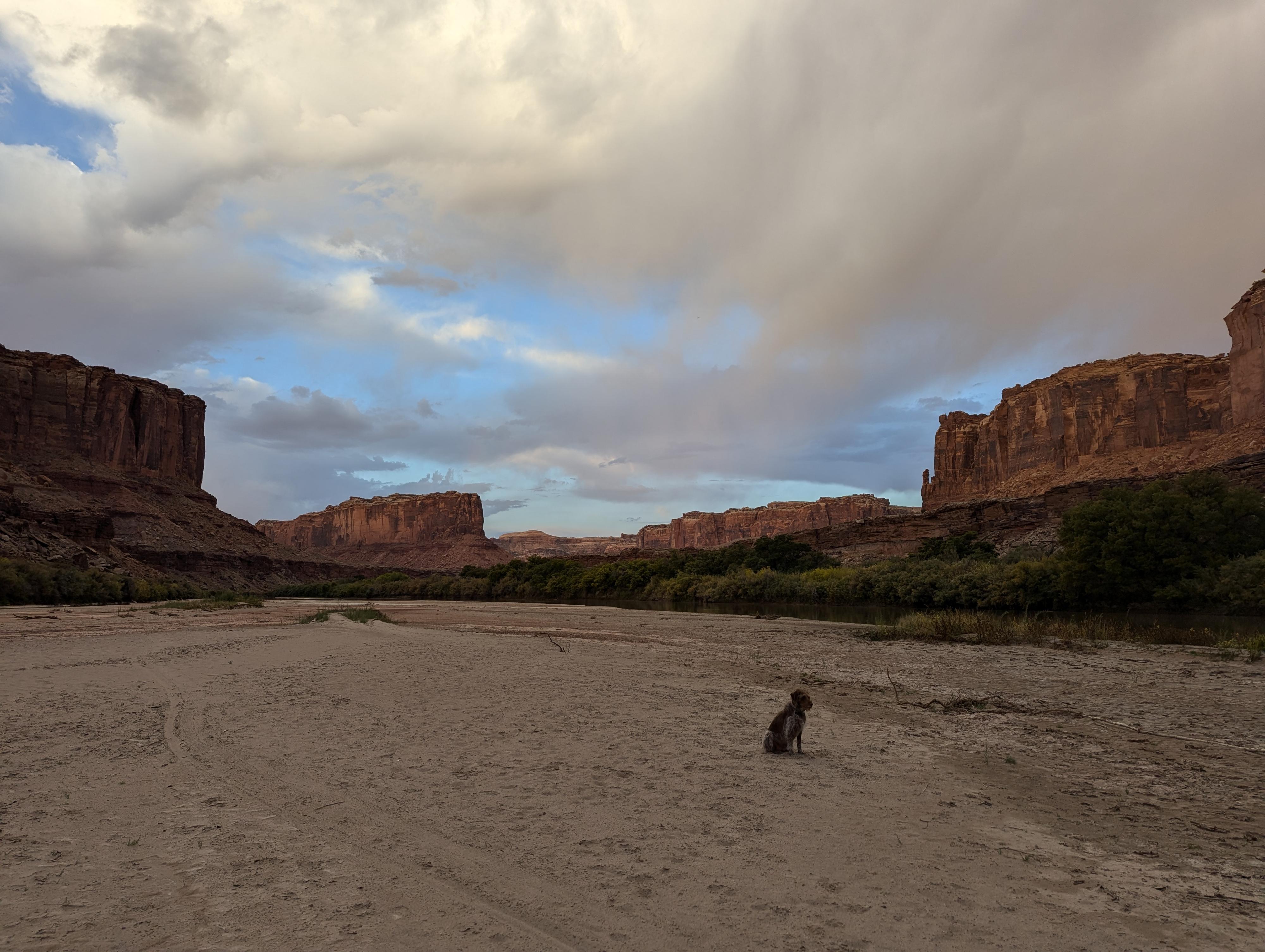 Abby enjoying last light during the last night on the river. Sand island camping at its finest.