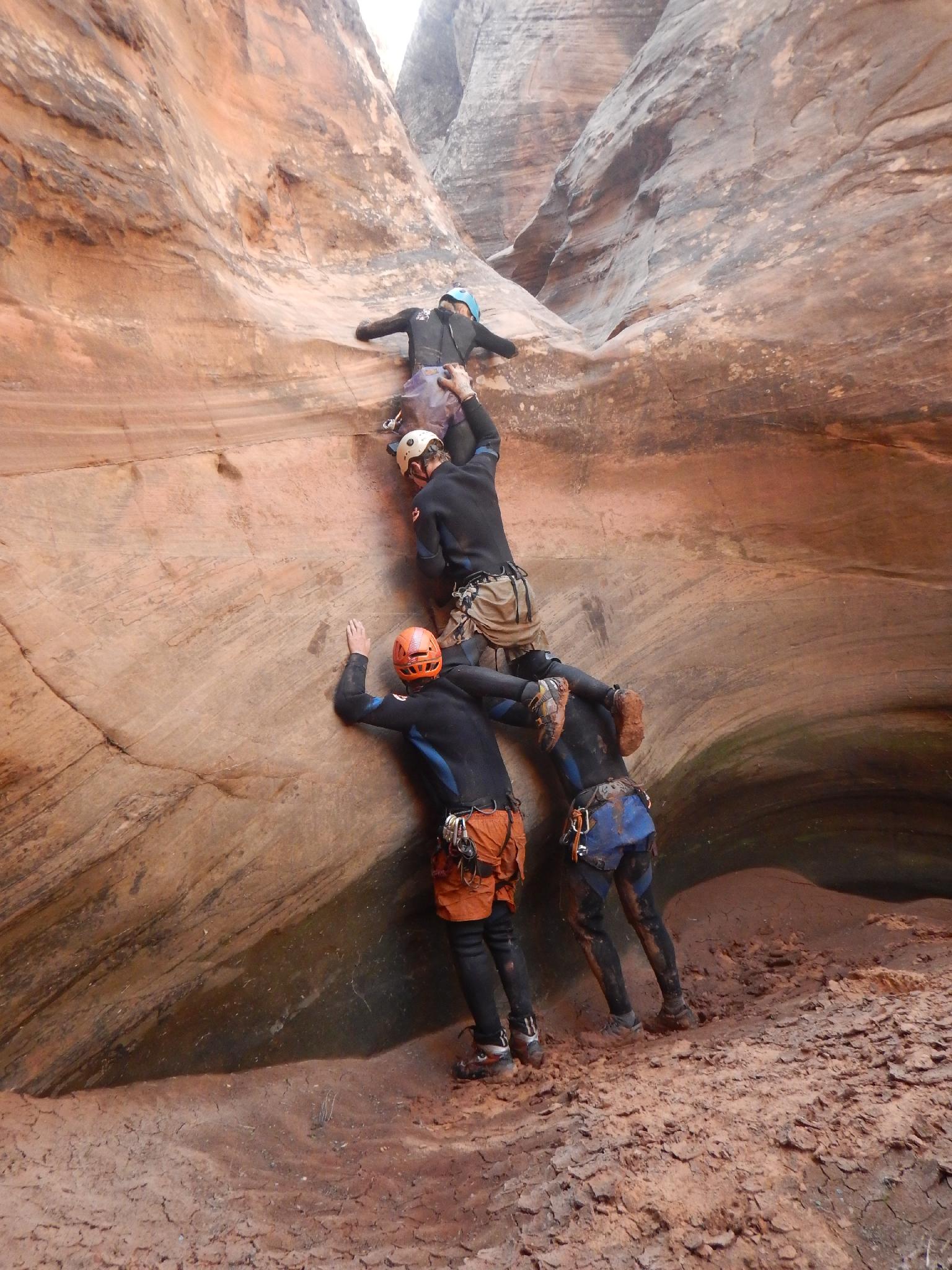 Human Pyramid down an obstacle.