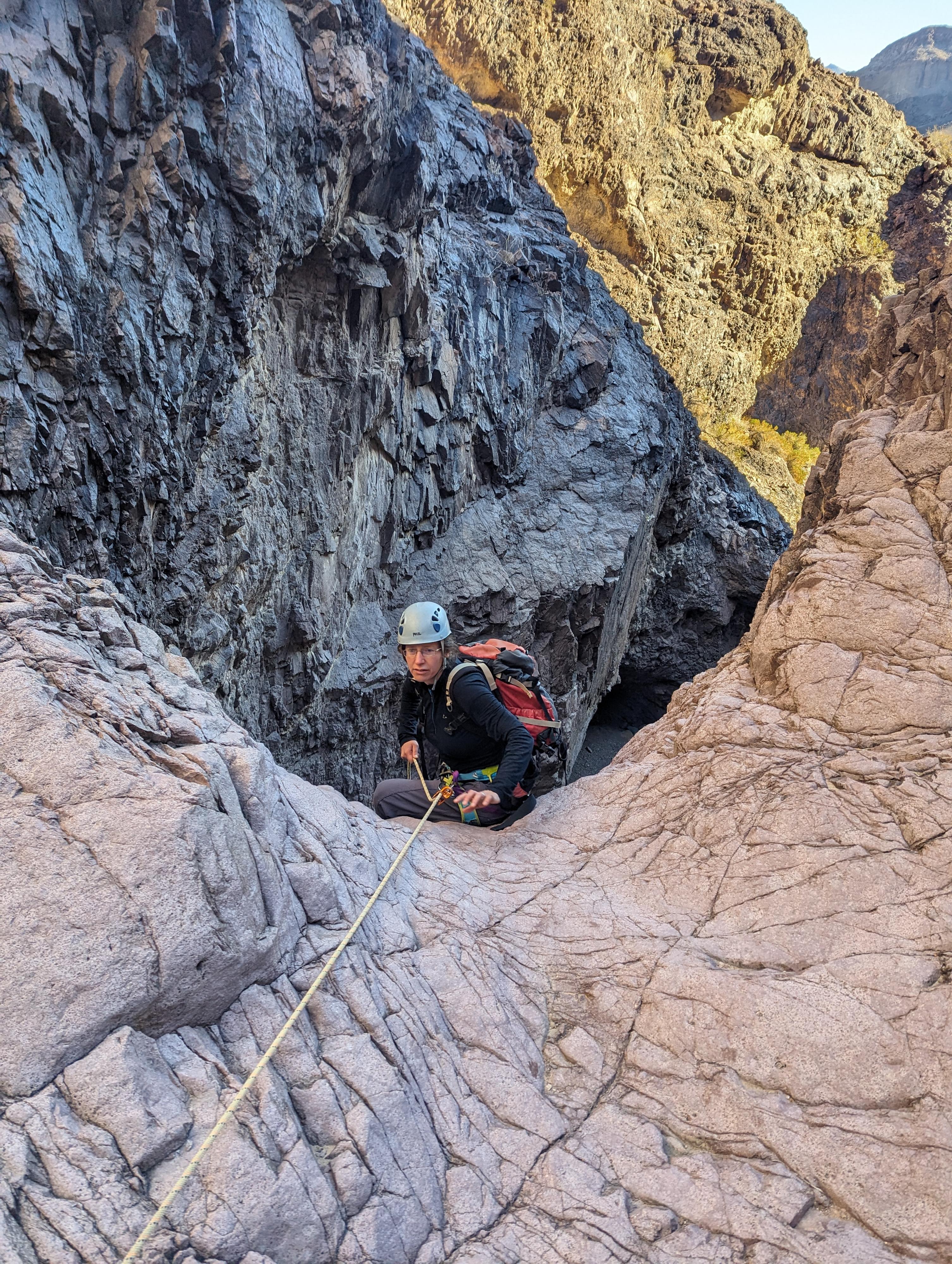 Diane Rapelling in Weeping Springs Canyon