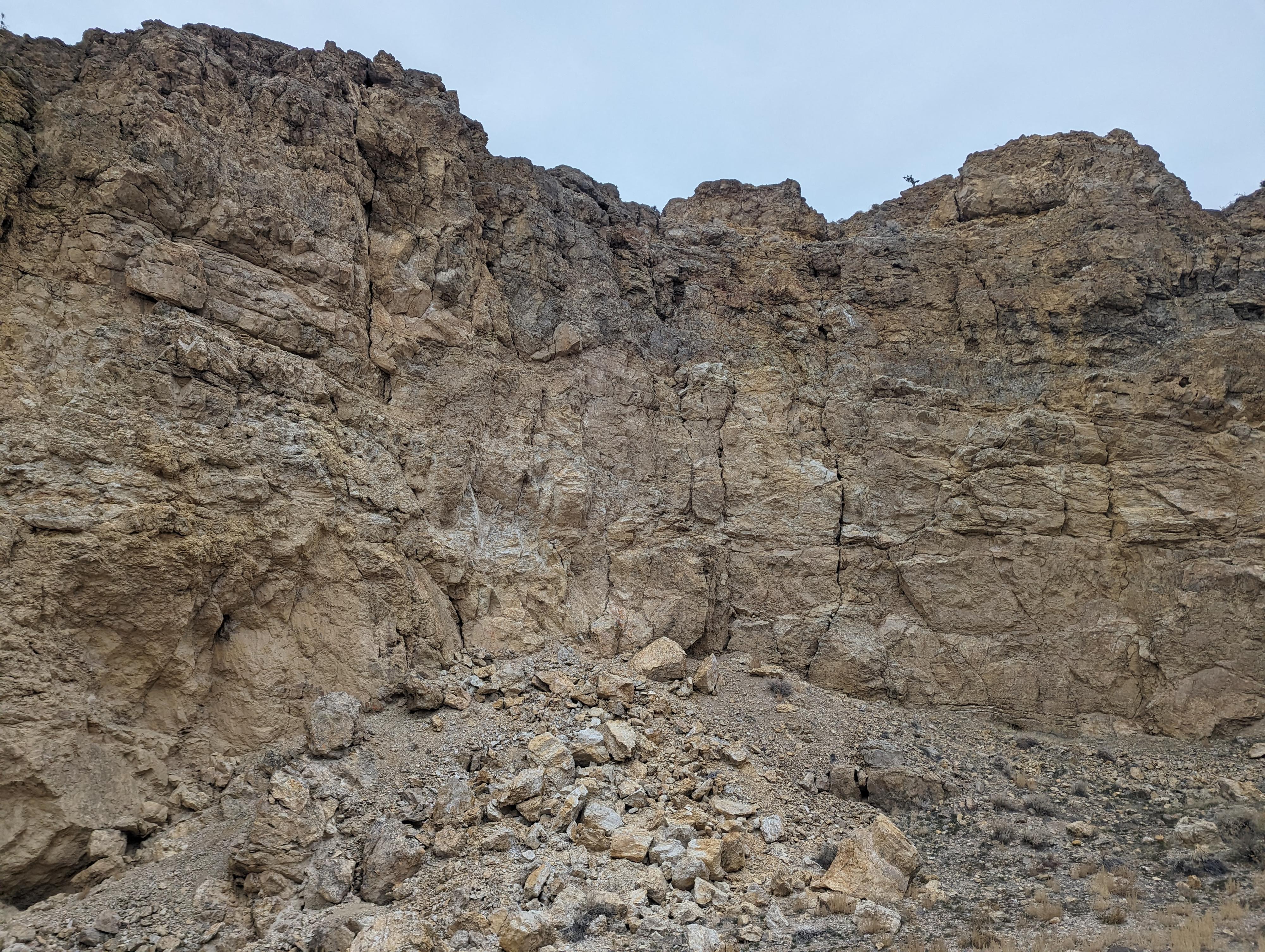The crumbly cliff walls on the east side of the sinkhole