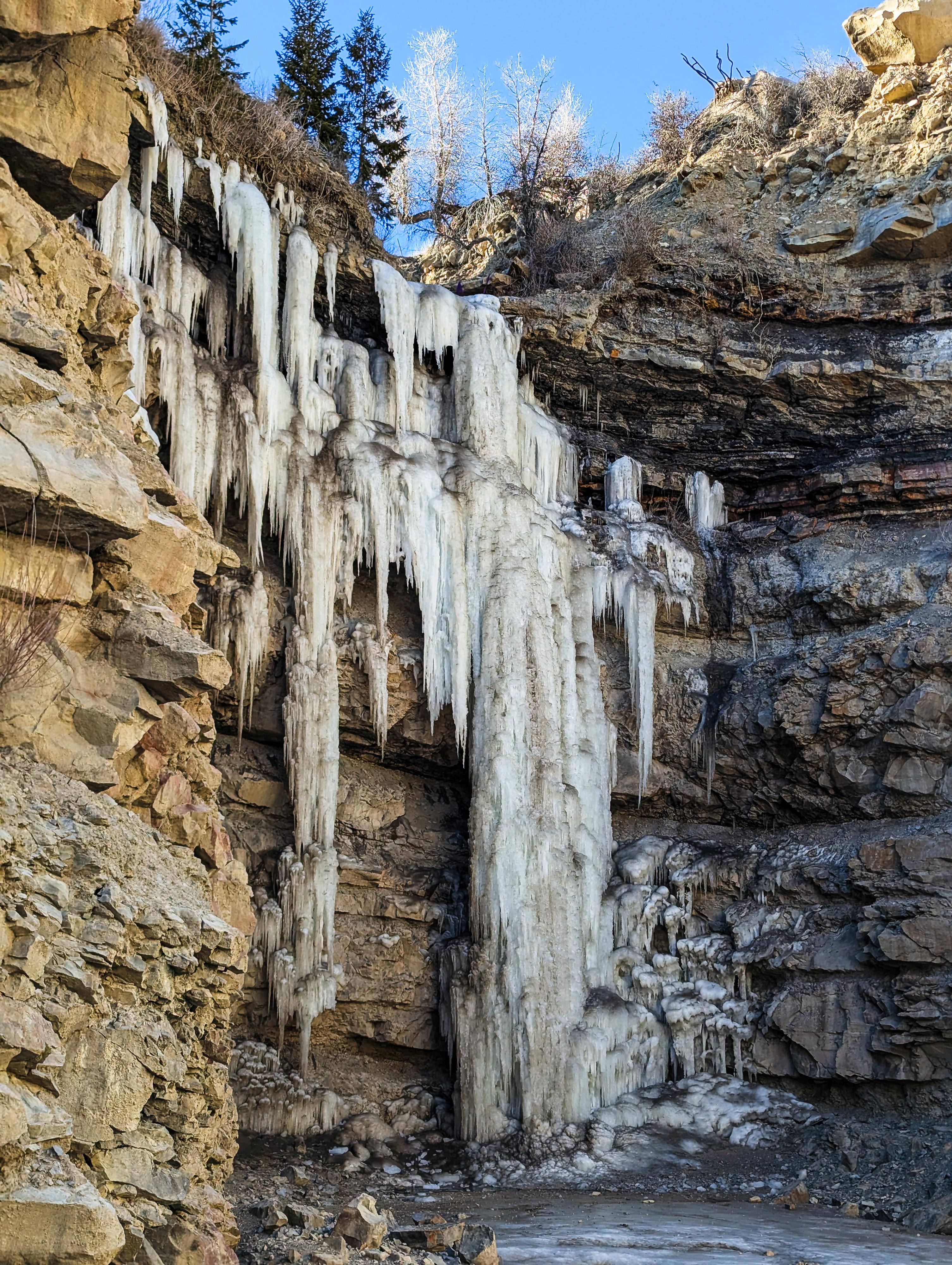 A view of Ford Creek Falls. Fairly soft ice on this warm day.