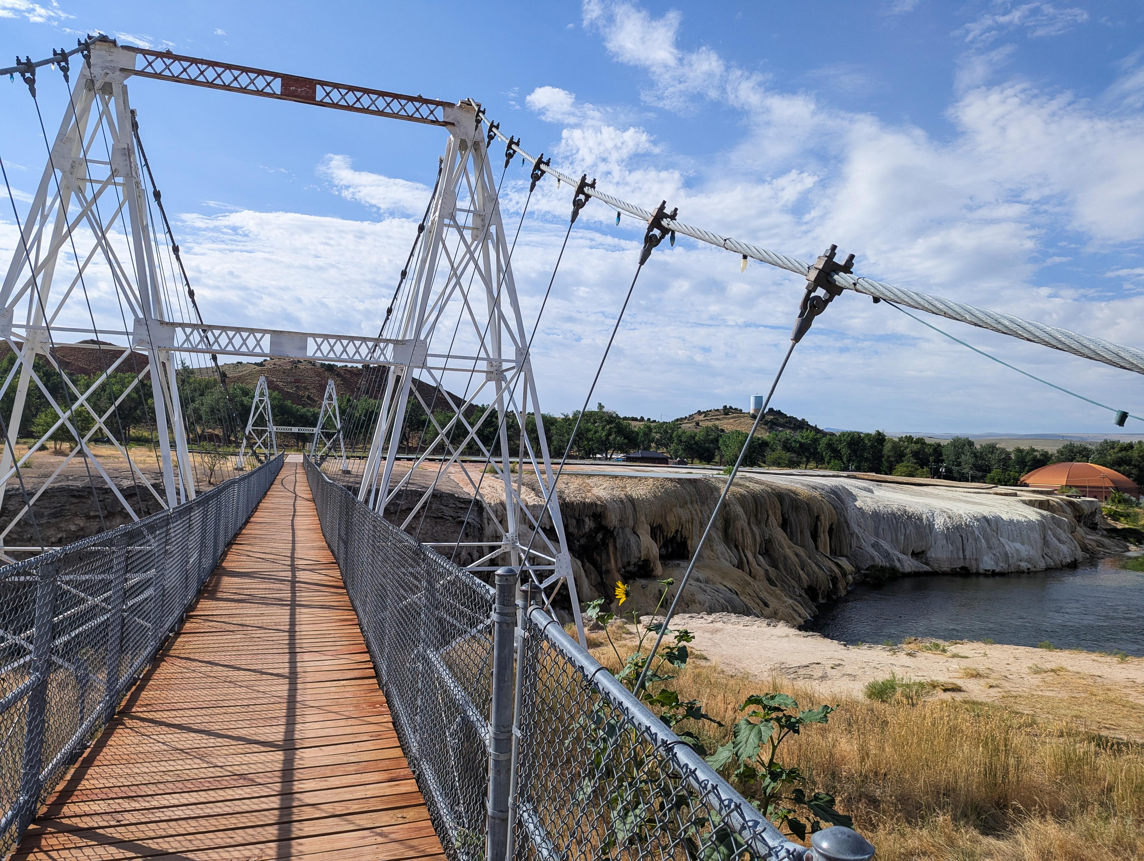 The suspension bridge over the Big Horn River