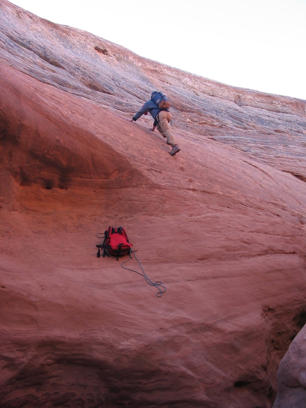 Ryan doing the initial downclimb into Larry