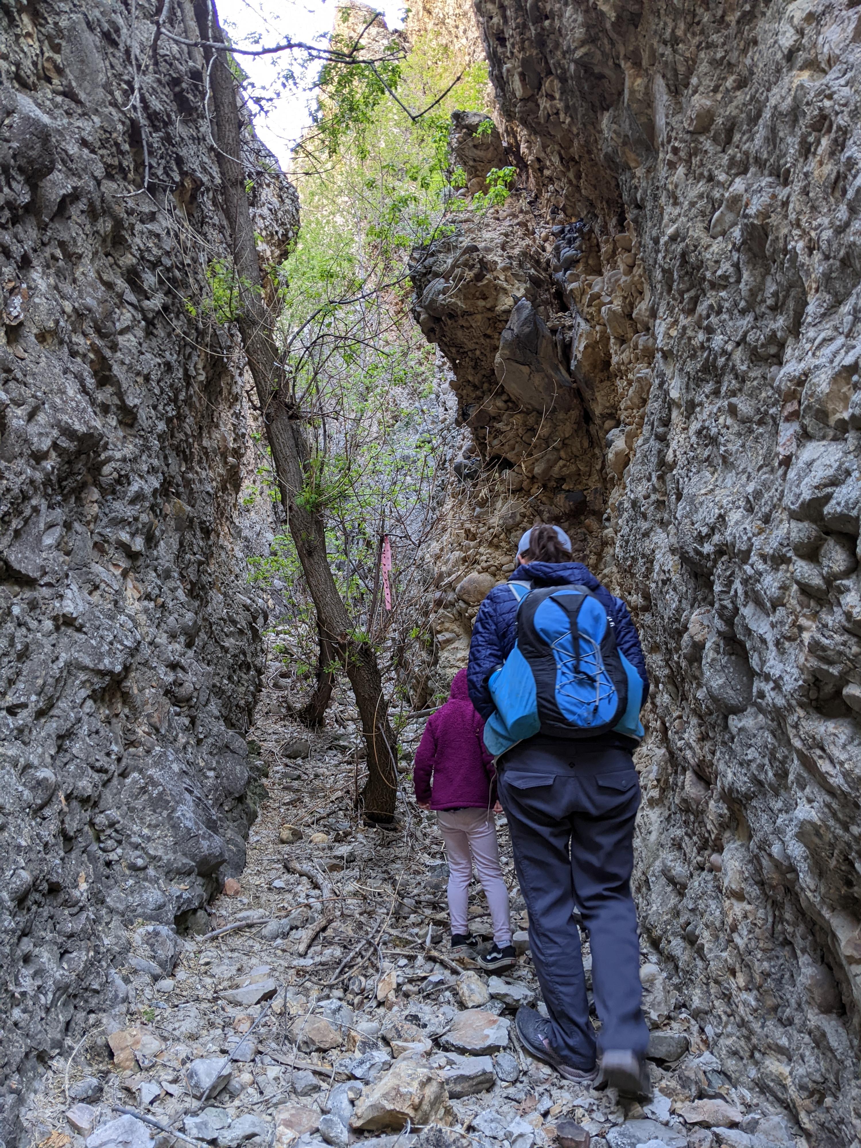 Working up the approach canyon.
