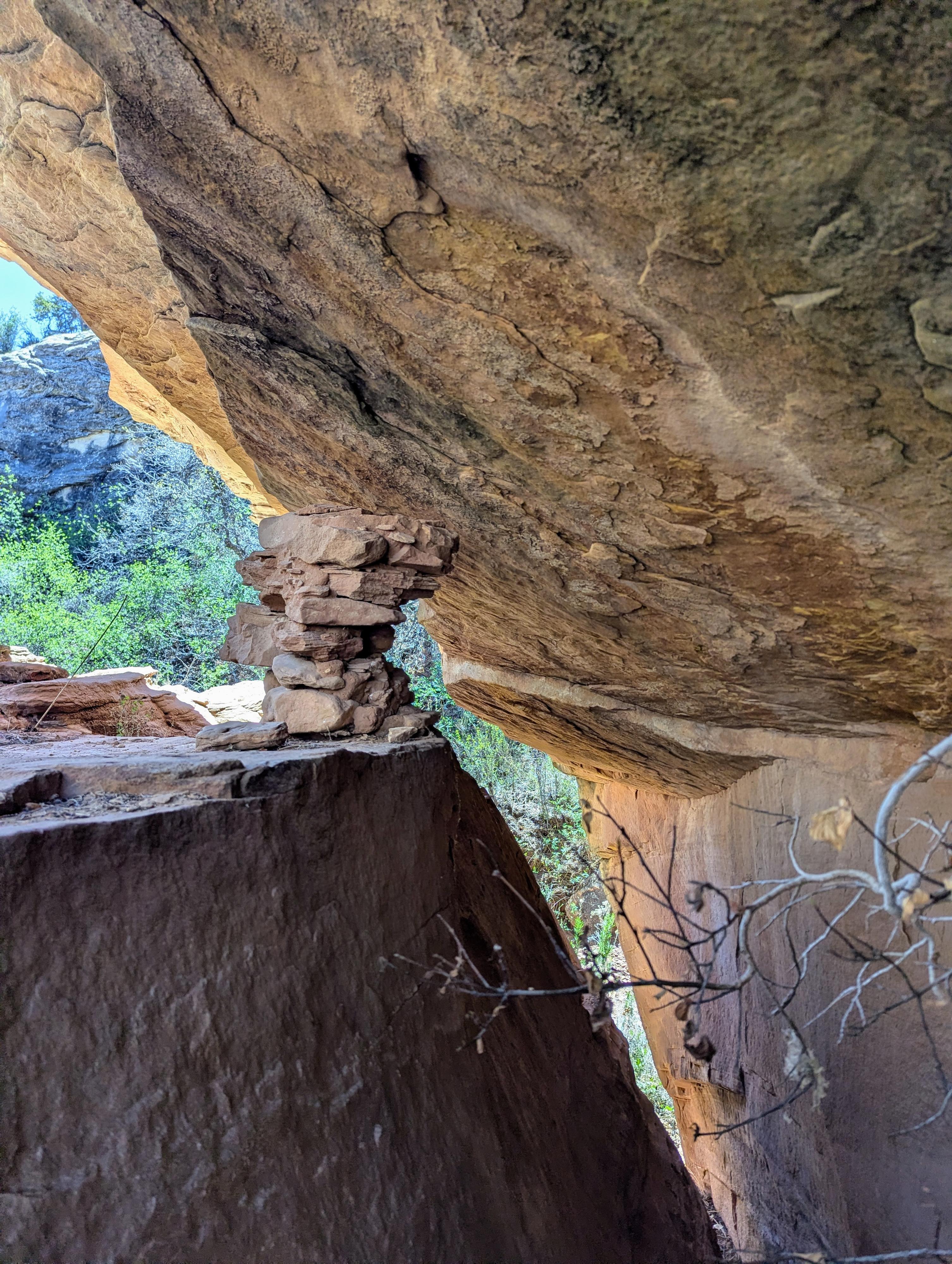 Small tower of rocks on top of a large boulder.
