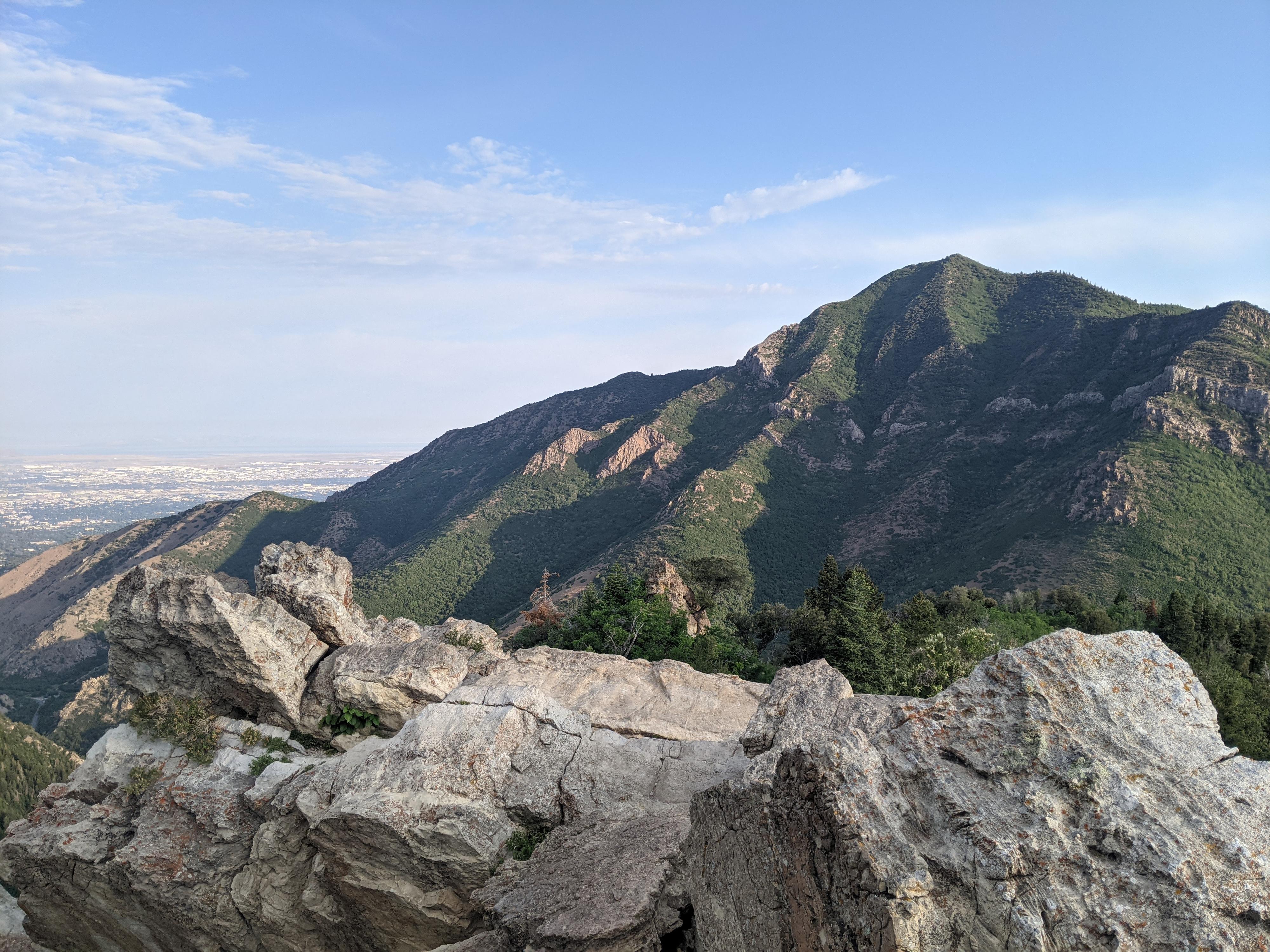 Grandeur Peak and the Salt Lake Valley beyond from the overlook.